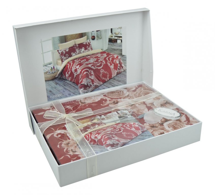 - семейный: пододеяльник 2 шт. (ширина 160 см, длина 220 см), простыня 1 шт. (ширина 240 см, длина 260 см), наволочки на пуговицах 2 шт. (ширина 50 см, длина 70 см), наволочки на пуговицах 2 шт. (ширина 70 см, длина 70 см)